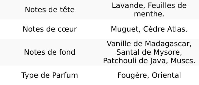 Ted Lapidus pour lui incarne l'audace et la sophistication. Une fragrance élégante à la fraîcheur longue durée qui reflète la passion et la sensibilité que le créateur tient à offrir à ses hommes. Une symphonie de notes créée pour les hommes à forte personnalité, arborant leur style et leur assurance. La lavande se mêle à l' ananas et au café torréfié pour sublimer la chaleur de la vanille et créer une fragrance unique qui rappelle l'essence même de la marque. La fragrance est contenue dans un flacon à l'allure irrévérencieuse et sophistiquée, rappelant un shaker élégant.